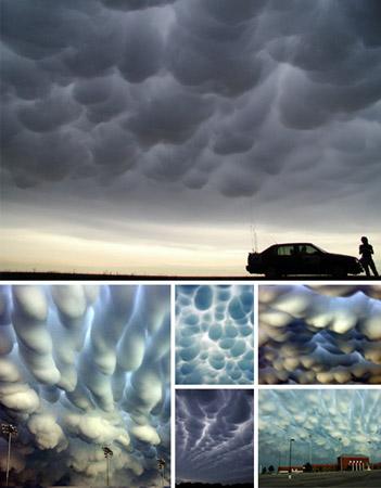 乳房云的出現(xiàn)是不祥的預(yù)兆,它經(jīng)常預(yù)兆著暴風(fēng)雨或其他惡劣天氣的出現(xiàn),乳房云中主要包含著的是冰晶體,它能延著一個(gè)方向伸展數(shù)百英里,個(gè)別乳房云結(jié)構(gòu)能夠保持靜止不動(dòng)10-15分鐘。