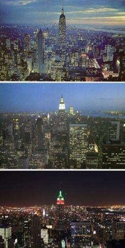 紐約曼哈頓在過去60年時(shí)間里并沒有發(fā)生翻天覆地的變化。第一幅照片拍攝于1954年,當(dāng)時(shí)的很多建筑現(xiàn)在仍然屹立在那里。截至第二幅照片拍攝時(shí)的1985年,雖然地平線上出現(xiàn)了很多新建筑,但總體上并未發(fā)生戲劇性改變。1985年至2009年,曼哈頓在形象上的改變更令人難以發(fā)現(xiàn)。