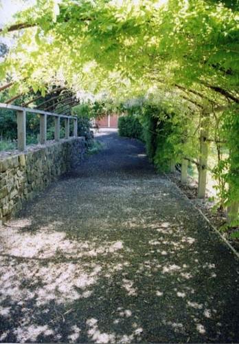 1.圓形的石子路上通往入口,長長的藤架讓路途變得格外涼爽。