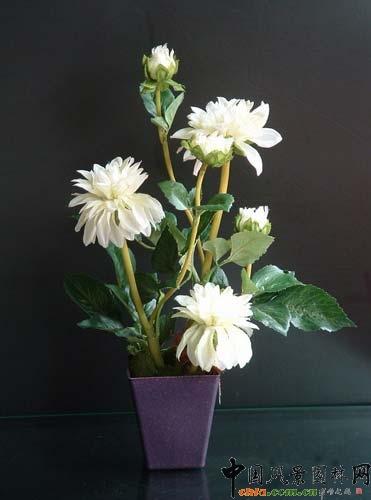 當然,插花作品還要注意使葉材質感與花材質感配合協調,才能產生自然流暢的效果。配合不當則顯牽強,甚至弄巧成拙,如松葉配菊花比配康乃馨協調。