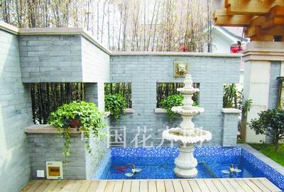 別墅位于小區三叉路口,相鄰和外界對庭院內視線干擾大。為了營造良好的私密性,看似平常的擋墻設計也耗費了設計師不少心思。該地段為弧線造型,要解決視線 干擾有很多種方案:高綠籬,有壓抑感;把綠籬變為景墻,景墻的形式變化無窮,不過,即使物業管理方同意,與周邊環境也不和諧;如果栽種竹林,雖然與周邊環 境和諧,卻沒有特色。僅有竹林,也不能營造趣味性;使用假山,既有趣味,又是與水景完美搭配的傳統做法,但同樣與周邊環境不融洽,有突兀之感。最后,設計 師將以上方法綜合運用,從外向內依次布置矮珊瑚綠籬、竹林、折疊式景墻,色彩、材質、空間差異上的巧妙組合,讓坐在親水平臺上的業主既能獲得戲水樂趣,還 能有層次多樣的風景可賞,別有一番樂趣。掩藏在景墻內側和水下的LED射燈為花園夜景平添一縷縷柔和的彩色燈光,也為夜歸人平安回家帶來方便。(本案例由張奇志庭院景觀工作室提供)編輯:ree