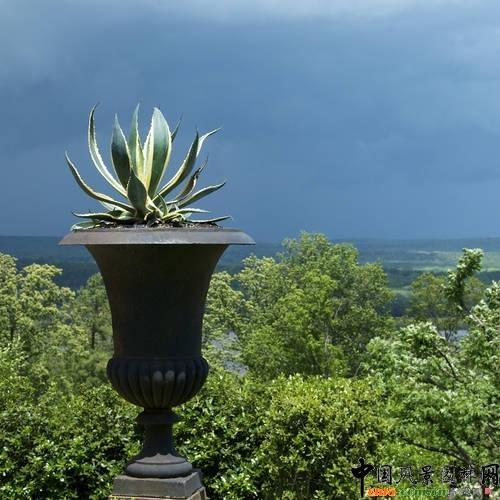 龍舌蘭是美麗的,然而又是令人敬畏的,因為尖銳的利刺和毒性的汁液使得它們的外表看起來難以靠近。實際上,它們是相當善意的植物——耐熱耐寒,易于照顧。一座金屬的容器可以將單株龍舌蘭化身為大型的盆栽,一處被賦予雕塑感的藝術景觀。