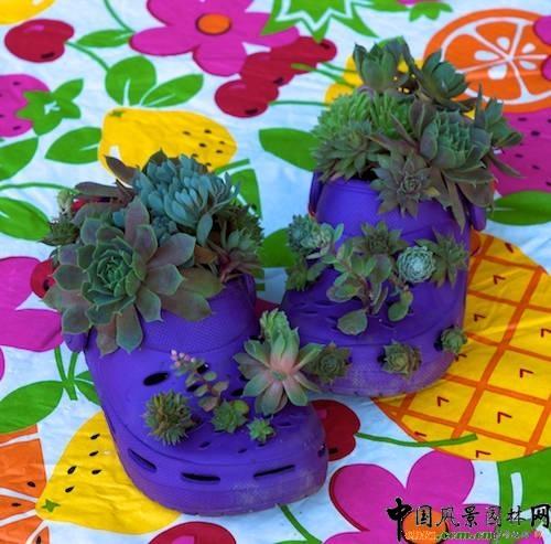 這就再簡單不過了。Crocs的鞋有很大的內置排水孔,簡直就是天然的盆栽容器——植物們似乎非常喜歡它們。只需要把盆栽土壤塞滿鞋子就行。