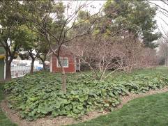 宿根花卉中大多數(shù)種類冬季地上部枯萎,為兼顧冬季景觀效果,不適宜大面積應(yīng)用,而終年常綠的類型,不受限制。上海綠地中常在林下、林緣集中片植或小塊點綴,常見應(yīng)用的有吉祥草、鳶尾、紫茉莉、石蒜、金葉石菖蒲、金葉苔草、蔓長春花等;一些株型矮小、葉濃密、耐粗放管理、綠期長的種類適宜用作鑲邊,應(yīng)用較多的有沿階草、紅花酢漿草、蔥蘭等;一些種類適宜在森林公園林下散生營造野生效果,如二月蘭、紫菀、紫花地丁、夏枯草等;宿根花卉還可應(yīng)用于古樹名木保護區(qū),防止表土裸露,發(fā)揮保濕、透氣和美化景觀的效果,適生的有白三葉、紅三葉、紅花酢漿草、鳶尾、花葉蔓長春等。宿根花卉應(yīng)用于地被,最好錯開各自的展葉期和開花期,如早春開花的二月蘭與夏秋開花的紫茉莉適合交替混種。