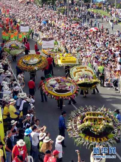 哥倫比亞是世界上主要的鮮花生產國和出口國之一,一年一度的鮮花節已成為哥倫比亞提高鮮花種植業知名度和推動鮮花出口的盛會。 新華社/法新