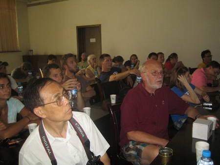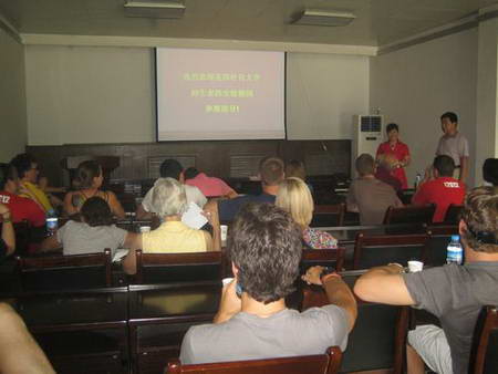 花卉研究室主任原雅玲以PPT的形式向客人簡要的講述了西安植物園的發(fā)展概況。將植物分類區(qū)、展覽溫室以及一些珍稀的植物如紅豆杉、馬褂木、串果藤等一一做了詳細的介紹與講解。當大屏幕上顯示出來我園培育的王蓮照片時,臺下的美國人紛紛驚呼表示贊嘆。