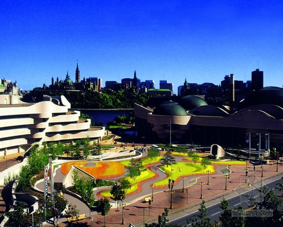 加拿大渥太華的文明博物館是世界上最大的博物館之一,與之隔江相望的是加拿大的國會大廈。這個廣場的改擴建是由Claude Cormier Architectes Paysagistes+Aedifica設計的,廣場不僅能夠提供給博物館參觀人員休閑放松的地方,同時能夠通過廣場的草的變化來詮釋加拿大從荒蕪發展至今的歷史。
