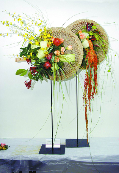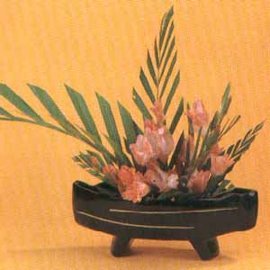 運用線條的技法喜歡線條的美,這是我國人傳統的欣賞習慣,這可能是受中國書法藝術的影響。人們感覺線比面更有情趣,更有生氣,更能抒發感情。傳統的插花藝術中,線條的表現力十分豐富,可以它來表示風勢、趨勢等,顯示了一種無形的力量的存在。各種不同風格的線條表達不同的內涵,如粗壯有力的線條表現剛陽之氣,纖細柔韌的線條表現溫馨秀麗的韻味,飛動的線條,給人以渾灑自如、酣暢淋漓的美,密集排列、順勢而下的線條,使人有一瀉千里之感。