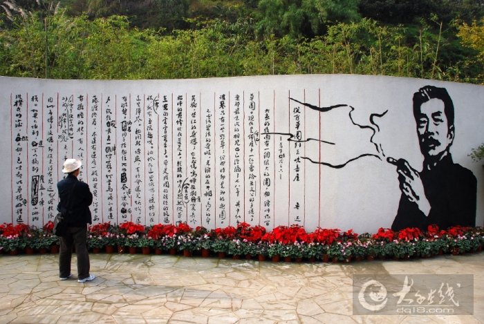 紹興展園入口處,是一處題為"百草園"的小景點。在景點右方,立著一塊寫有魯迅文章的景墻,文中提到了"百草園"三字。據展園建設負責人介紹,該景點中栽有桑葚、皂莢等植物,還有菜畦和泥墻根,這些都是根據魯迅文章布局的。