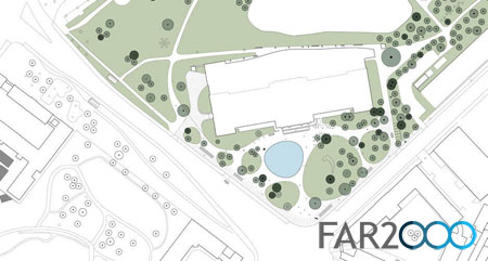 面積為7500平方米的公園看上去簡單而靈活,但充滿了特色。游客、藝術家和過路人都可以利用這里休息。設計的核心元素是一座"臺石"(socle),也就是水景布置,可為博物館、城市生活或者其他活動當舞臺。寬大的草坪和本地樹種的廣泛種植使得這里成為博物館、公園和城市之間一座獨特的花園。