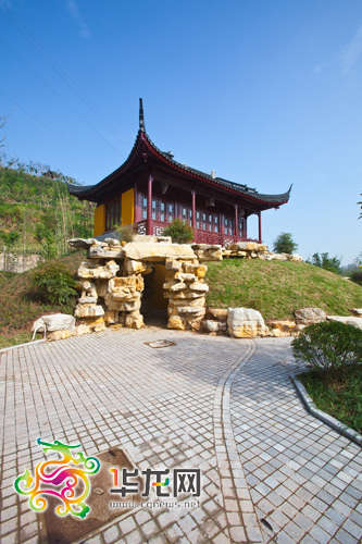 經過中心廣場,穿過白龍洞,登上邀月樓,"群山西來,大江東去"的景象盡收眼底。邀月樓為明清風格,五開間兩層歇山頂古建筑,簡潔、開敞、大氣,與園博會整體建筑風格相協調。