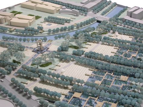 基地現有的用地已經被整治出來,這片區域原為密集的居民區,是在古運河文明孕育下產生的繁榮的生活區。由于破舊的建筑和狹窄的街道與周邊商業街的氣氛越來越不協調,這片場地被拆遷,除了隱約殘存的街道痕跡,幾乎已經是一片廢墟。結合其周邊環境的特點,我們認為廣場的設計意圖在于強化濟寧作為運河之都悠久的歷史文明和鮮明的城市個性,并且應該是適合濟寧人日常生活的城市休閑廣場。基于這種定位,結合場所精神,我們在構思廣場方案時便采用了四個層面疊加的結構:城市肌理的延續+場地原有風貌的再現+水田景觀的展示+運河之都雕塑。