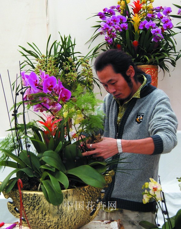 花藝設(shè)計(jì)師廉兵正在做龍年組合盆栽打樣工作,記者隨即拍下一組制作過程與大家共享。