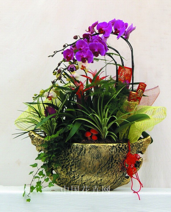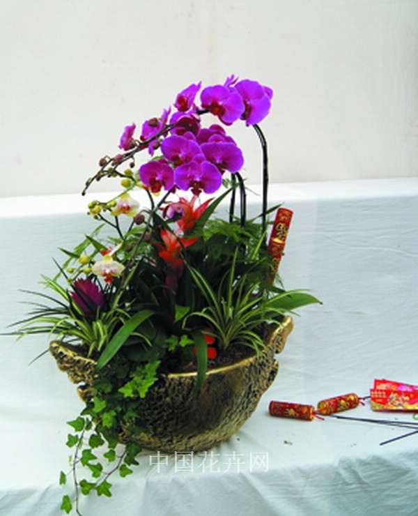 產(chǎn)品組成中,盆器需100元;大花蝴蝶蘭35元/支,需3支;迷你蝴蝶蘭25元/支,需3支;鳳梨30元/盆,需3盆;金邊蘭6元/盆;文竹6元/盆;長春藤3元/盆;另需輔助資材20元左右,包括爆竹、蘑菇、絲網(wǎng)、緞帶等裝飾品,成本總計(jì)僅需400元,市場(chǎng)零售價(jià)為600元以上。