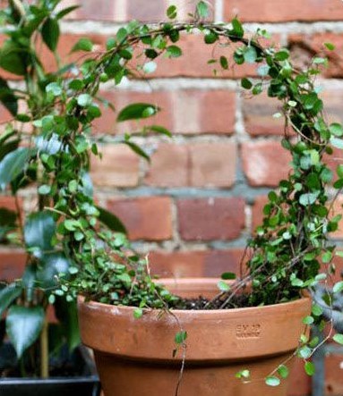 你喜歡一些枝蔓類的小綠植,她優雅細長的“身段”的確充滿了魅力,但是越長越長,就會略顯凌亂,就好比女孩子的長發沒加以打理。那就用一根長鐵絲坳成圓弧形,然后將枝蔓順勢沿著鐵絲盤上去,轉眼之間一款秀麗的“植物發型”就打造成功了!