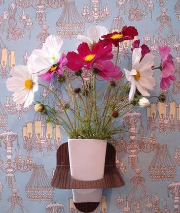 剛才我們已經就介紹過一招如何讓小綠植變身墻飾的方法了,現在又是一種新方法。取一塊廢舊的書擋,然后鉆兩個小洞,注意是那塊擋板的上下各一個洞眼哦。然后用螺絲固定在墻上,就可以把花瓶插入其中了。