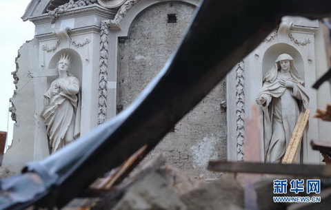 5月20日,在意大利地震災(zāi)區(qū)圣卡洛,一座小教堂在地震中倒塌。意大利北部艾米利亞-羅馬涅大區(qū)20日凌晨遭遇里氏5.9級地震,造成至少7人死亡、50人受傷,多棟建筑被毀,約3000位居民被緊急疏散,整個意大利北方均有震感,當(dāng)?shù)匾恍v史性建筑嚴重受損。新華社記者王慶欽攝