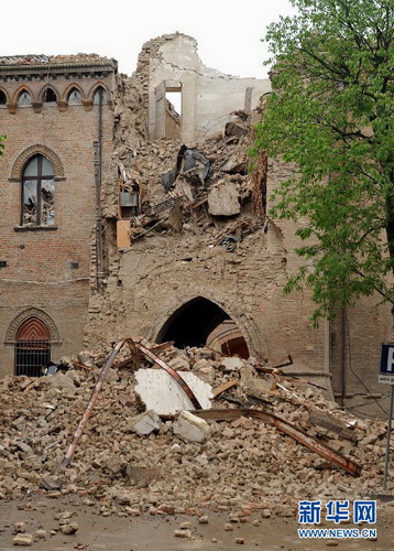 5月20日,在意大利地震災(zāi)區(qū)波焦雷納蒂科,當(dāng)?shù)亟ㄓ?9世紀的市政廳塔樓在地震中倒塌。意大利北部艾米利亞-羅馬涅大區(qū)20日凌晨遭遇里氏5.9級地震,造成至少7人死亡、50人受傷,多棟建筑被毀,約3000位居民被緊急疏散,整個意大利北方均有震感,當(dāng)?shù)匾恍v史性建筑嚴重受損。新華社記者王慶欽攝
