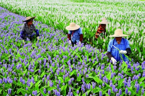 日前,中國水生植物擴繁基地(蘇州太倉)的農(nóng)民正在管理盛開的海壽花。作為改善河道水質(zhì)和美化環(huán)境的良好載體,該基地種植有千屈菜、美人蕉、睡蓮等水生植物200多畝近40個品種,并已在全市移栽水生植物200多萬株。