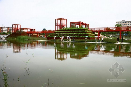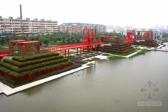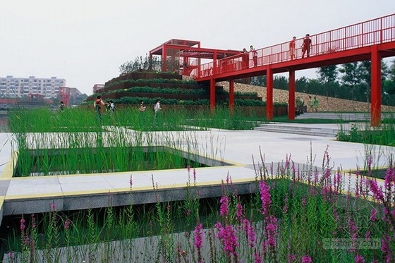 Turenscape Architects利用一個叫做再生景觀設計的可持續發展系統將天津的一個垃圾場改造成為了一個自然綠洲。天津橋園公園是一個易維護的多池塘的城市綠地,有當地植被和野生動物以及極具特色的花園露臺和紅橋,使游客能從忙碌的城市中走出來,來享受這一自然綠洲。天津橋園工業園占地54公頃,這里曾是一個污染嚴重的、廢棄的垃圾場。該市政府請Turenscape來為該地設計一個可持續的再生環境,并利用兩年時間建造完成。橋園公園非常易于維護,建筑師創造了多個花園空間來強調當地植被,生物多樣性,并為人們提供了一個可以獨處和放松的綠色空間。該地的再生設計為改善土壤質量提供一個很好的機會,同時也創建了雨水收集設施。并播撒各物種的種子來建造植被,同時其他本地物種也可以自由生長,與大自然共同設計這個景觀。設計的大量濕地和池塘在雨季生長,這個天津的社區公園成為了一個人口稠密的中國城市的自然綠洲。
