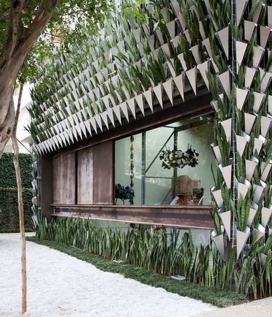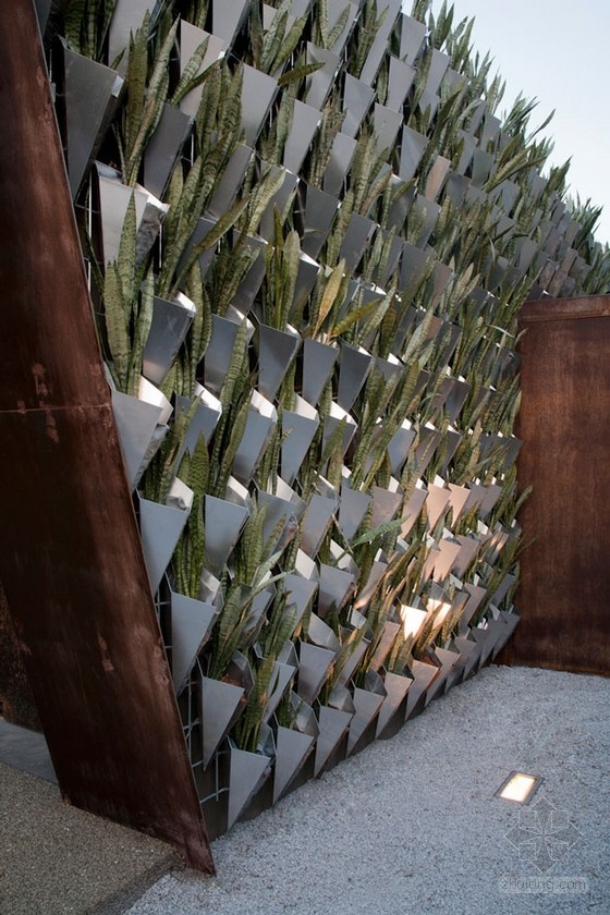 這座生長(zhǎng)著的墻體與工業(yè)鍛造的鋼鐵表面形成了鮮明的對(duì)比和贊譽(yù)。在垂直花園內(nèi)部,自然光從大廈的開(kāi)放空間中進(jìn)來(lái),然而外部的電動(dòng)方格圍欄使得陽(yáng)光的控制更加容易。