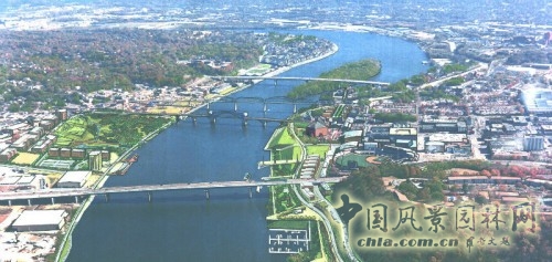 中國風景園林網 哈格里夫斯的設計體現出查塔努加的獨特。他把城市的濱水、83英畝的開放空間和基礎設施及46英畝的空間統一規劃,實現了多用途多功能的效果,使城市的目標--在河岸生活、工作、玩耍和學習成為現實。建立過程,而不是控制終端——哈格里夫斯。