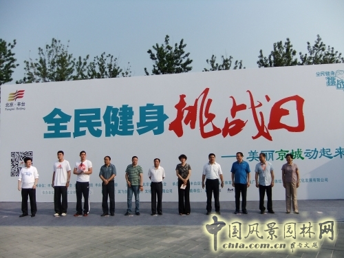 8時左右,“全民健身挑戰日”啟動儀式舉行,北京市體育局黨組成員、紀檢組組長,北京市體育總會副主席劉寶鎖;豐臺區委常委、宣傳部部長孫軍民,豐臺區副區長狄濤;豐臺區體育局局長薛紅等領導和北京男子排球隊主教練李牧;北京男子排球隊隊長王琛等嘉賓出席了啟動儀式。