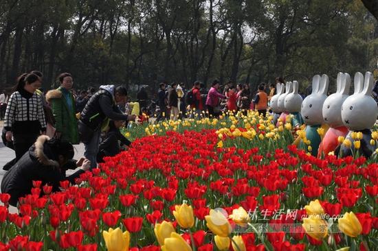 市園林局相關人士介紹,自從2011年園林部門舉辦新春郁金香花展以來,每年春節去看郁金香已成為市民們過節的“重頭戲”。今年花展的所有郁金香種球均來自荷蘭,目前已擺出了20多個品種共5萬多盆郁金香,還有一些品種將在春節期間擺放。該人士提醒:“近期天氣轉暖,目前在公園擺放的郁金香多數已進入盛花期,市民可要抓緊時間觀賞。春節前,園林部門將對部分早開品種的郁金香進行更換。”