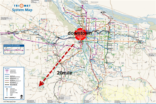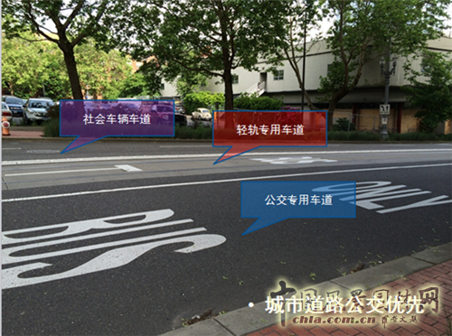 從城區的模式來看(見上圖),從市中心到這里(箭頭指向的位置)大概20公里的范圍。有公交汽車、輕軌和有軌電車這三種體系交叉運營。Bus主要是連接城郊和市區的一個定式線路,一般來說是在20到30分鐘一個班次,上下班高峰時段可能在10分鐘、8分鐘的間隔。城區主要依靠的是輕軌和公交這兩種體系,輕軌的速度快,用量比較大,連接城市和近郊的一些居民區;有軌電車主要應用于市區中。人們開車到城郊以后,通過有軌電車或者輕軌轉入城市內部。所以城市盡管道路非常密集,但實際上我們看見的車輛非常少。在交通規劃方面把大量的資源用在公共交通方面,在城市道路上可以看到,只有一條道是用于私人小汽車通行的道路,其他都是輕軌和公交專用。