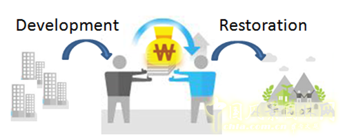 首先我為大家介紹一個正在韓國施工的自然園地修復的項目。在韓國,我們有生態保護助力基金的制度,這個制度的設立旨在減少因開發而造成的環境破壞。韓國政府向開發商收取一定的助力費,再將助力費投入到被破壞的地區。而修復遭受破壞地區的工作中有這樣一個類別,叫做“園地修復”。