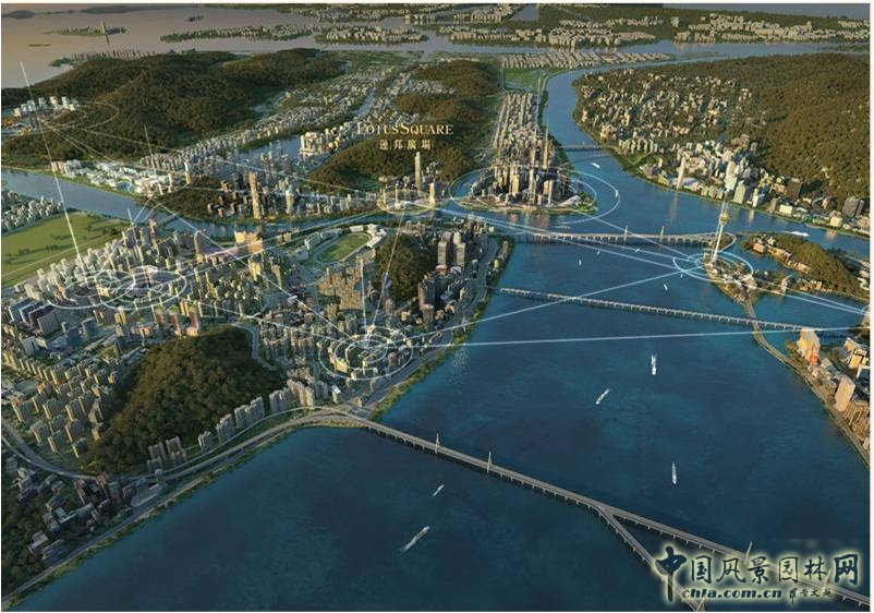 中國風景園林網訊 蓮邦廣場項目位于珠海橫琴十字門CBD,與澳門隔海相望僅為180米,坐擁橫琴與澳門直接相連的第三條通道—聯澳隧道,東面及北面可欣賞澳門海灣和城市景觀,西側臨小橫琴山,是橫琴CBD內唯一擁有山、海、城市三重景觀的國際化綜合體。