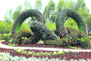 景陽大路與普陽街立交橋層次分明、色彩艷麗的立體綠化。