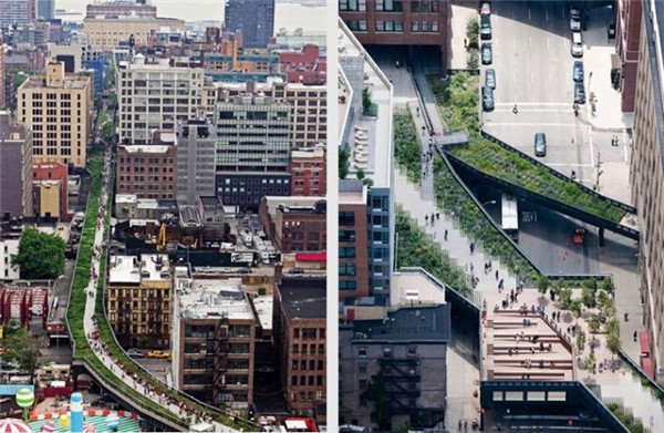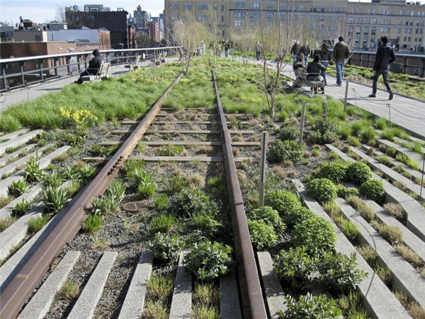 Piet Oudolf設計的高線公園可能是新長青種植風格中最著名的公共空間。高線公園是美國紐約市棄用的紐約中央鐵路高架線的一段,后被改造成高架橋上的綠道和帶狀公園。高線鐵路線于1934年建成,但只在1960年后被偶爾使用,1980年,最后一輛載滿了冷凍火雞的火車從這條鐵路上跑過。2009年,改造后的高線鐵路正式開放,整個空中花園高9米,長達2千多米,這座公園的設計理念來自1993年建成的法國巴黎的綠蔭步道。