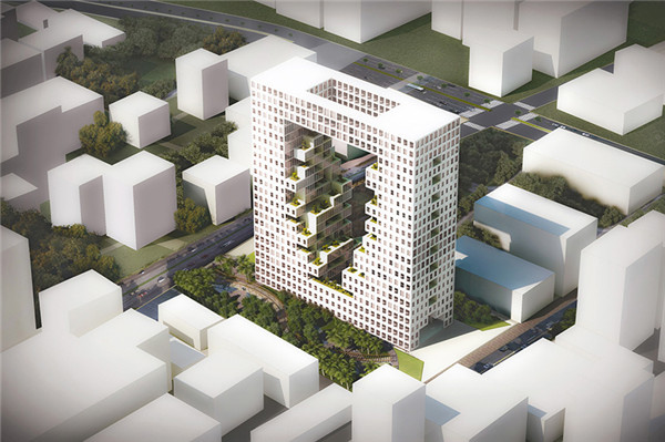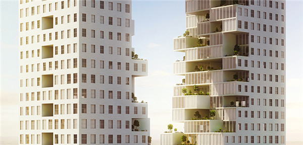 該大樓基于透空設(shè)計理念設(shè)計,其中被減去的部分變成了共享空間的“增加”。運用這種建筑理念,這處空間便將兩棟塔樓聯(lián)系在一起并且在其內(nèi)立面之間形成了一個綠谷。每個住宅單元都擁有一小片綠地空間,使大樓間形成一個整體的景觀視野。在城市景觀匱乏的大環(huán)境中,設(shè)計團隊相信通過這樣的技術(shù)手段不但能夠提高居民的生活質(zhì)量,而且還能增加市民對城市的認同。