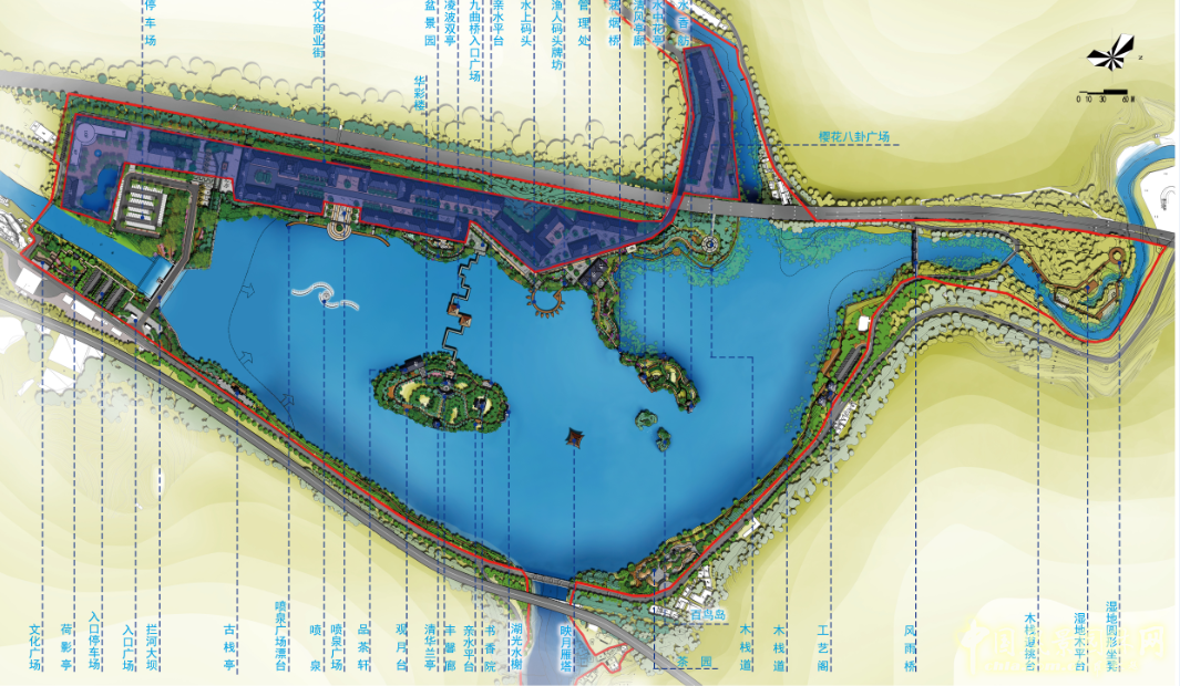 在景觀布置上我們考慮了三江堰景觀分為“一湖、兩岸、三島、三江”為加快目前污染日趨嚴(yán)重的劍江河上游楊柳街河的治理工作,都勻市決定在沙包堡辦事處陸家寨劍江河修建攔水堰一座,用于凈化楊柳街河水質(zhì),規(guī)劃實施筑壩治污,濕地綠化,打造劍江河三江堰水生態(tài)保護區(qū)及濱河景觀度假區(qū)。