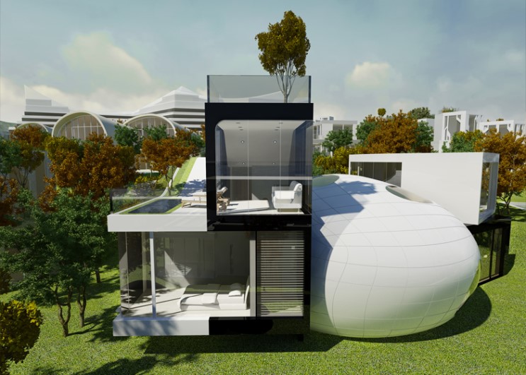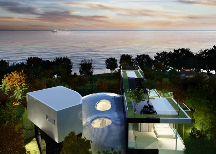 這座蠶繭別墅,以韓國濟州島的火山地形和蠶繭生命體作為有機體,由首爾建筑師事務所PlanningKorea設計而成。房子的中心位置是蠶繭,由外向內保護整個生命體,營造一個天然的生活空間。整座建筑于2012年9月開始,2015年竣工。