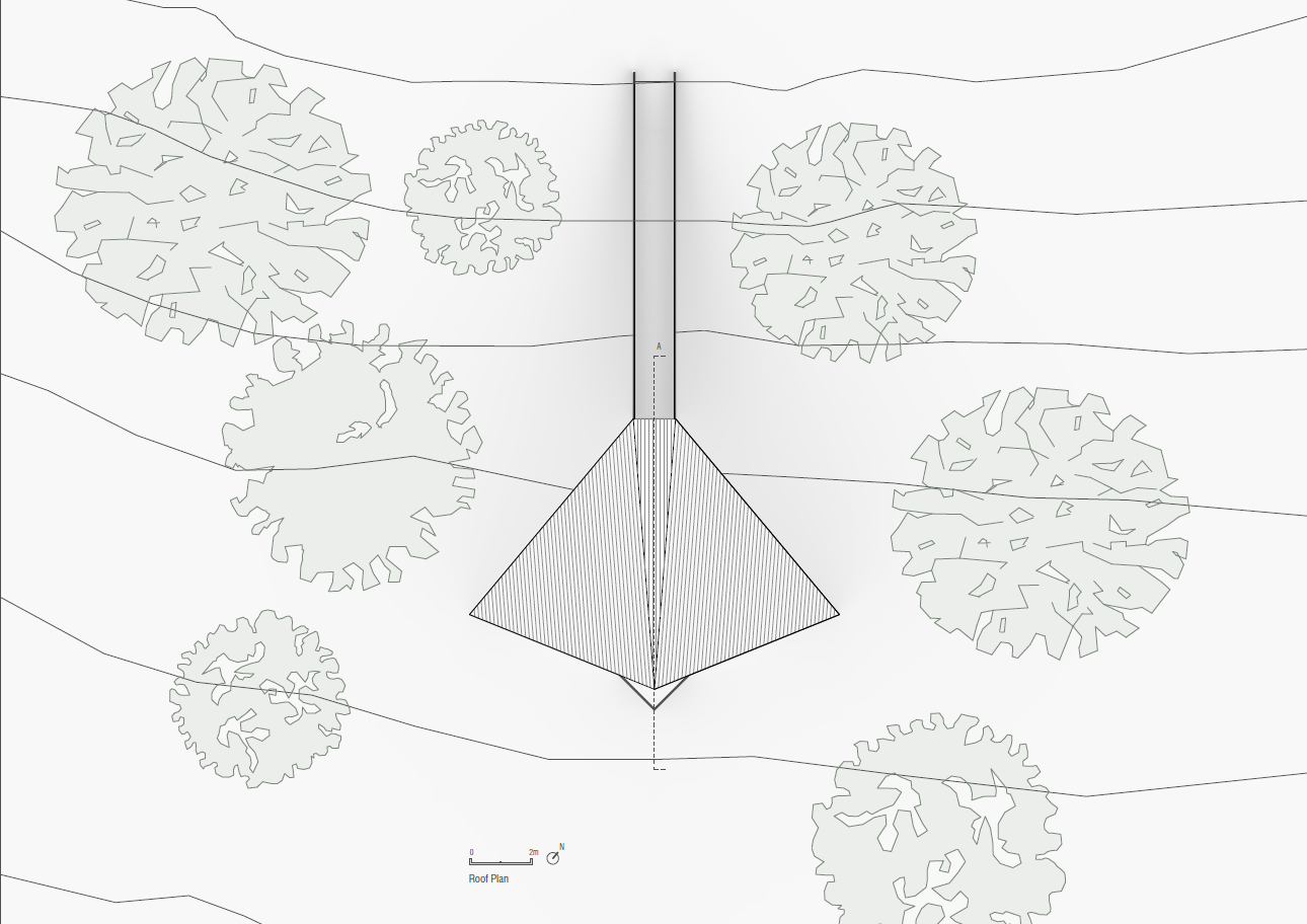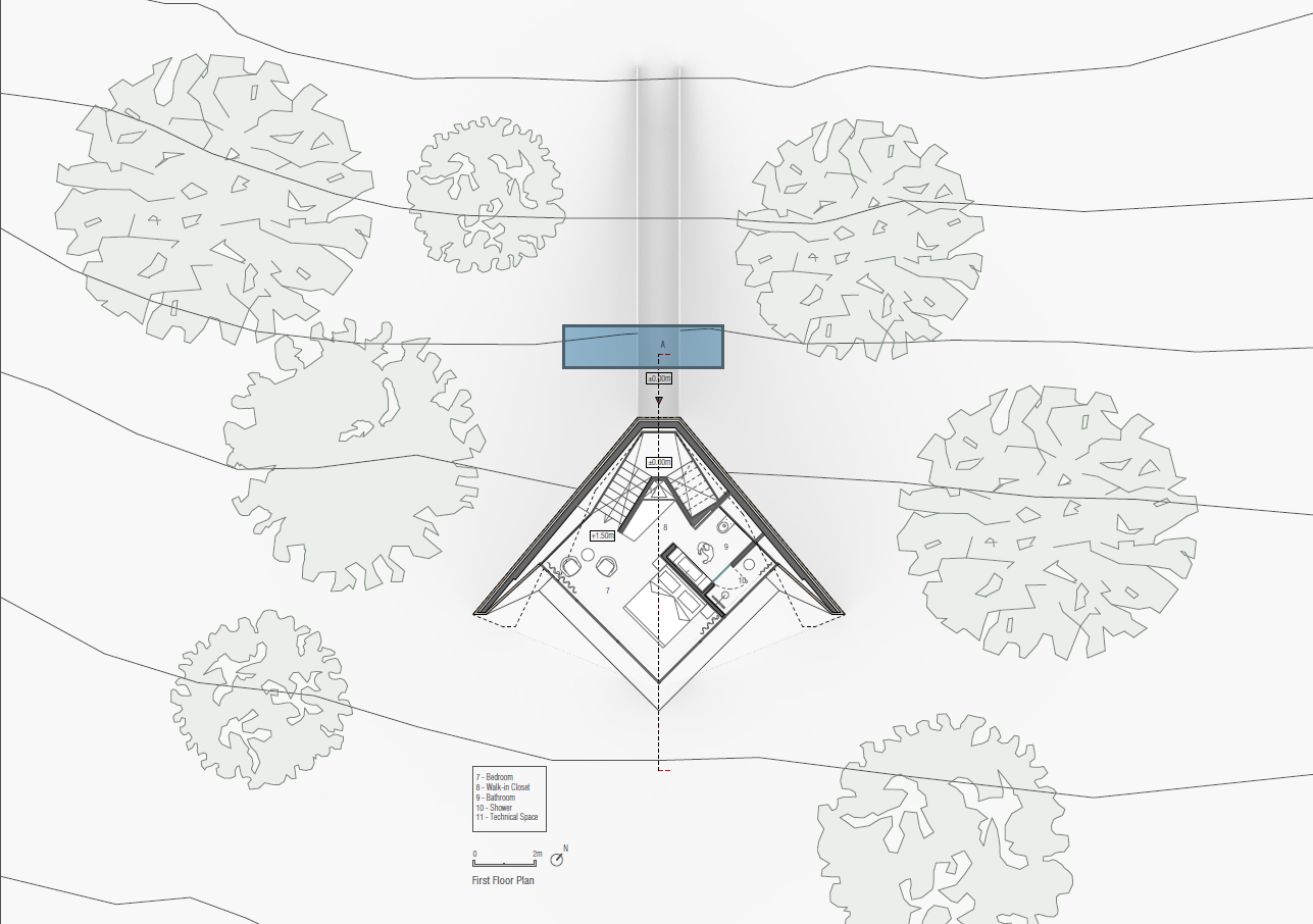 The project Tree Houses is located in West Virginia, United States. The single units create a new experience to live in the woods with a maximum connection with nature. The geometry with its sharp steep roof is inspired by the surrounding maple, poplar and oak trees and will be made of local wood.