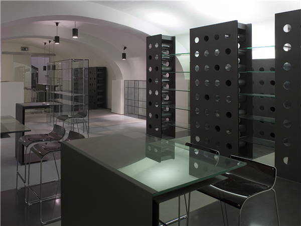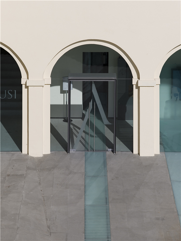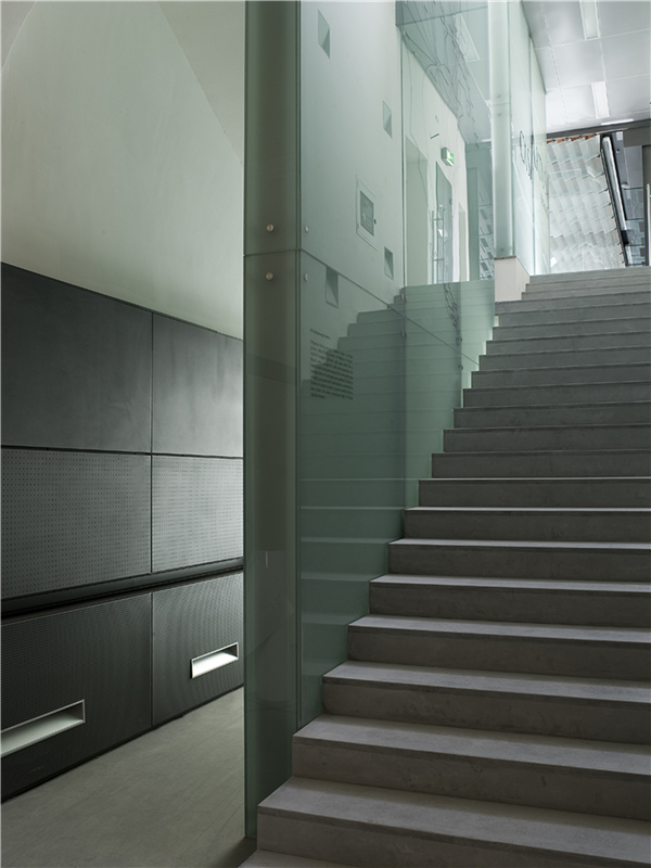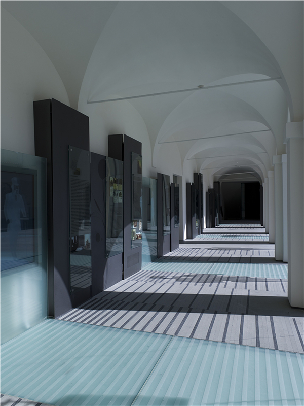 該項(xiàng)目的核心是具有歷史意義的入口大廳,略微傾斜的平面上的玻璃帶設(shè)計(jì),引領(lǐng)游客穿過門廊及Casa Artusi的入口。設(shè)計(jì)的主導(dǎo)思想是考慮材料和環(huán)境的視覺感知,將歷史建筑群的不同功能單元詮釋為一個(gè)整體。Artusi先生的故事作為統(tǒng)一元素,在概念及視覺上串聯(lián)整個(gè)建筑。交替的玻璃和鋼條創(chuàng)造了一個(gè)強(qiáng)烈展現(xiàn)室內(nèi)空間的系統(tǒng)。幾種特色材料(鋼、玻璃、聚碳酸酯和地板石)不斷產(chǎn)生小的變化,更好地展現(xiàn)了Artusi的故事感。