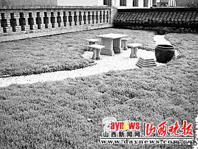 太原市盆景藝術中心辦公樓樓頂上,覆蓋著蓬松嬌嫩的佛甲草