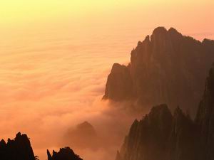 泰山日出是岱頂奇觀之一,也是泰山的重要標志,每當云霧彌漫的清晨或傍晚,游人站在較高的山頭上順光看,就可能看到縹緲的霧幕上,呈現出一個內藍外紅的彩色光環,將整個人影或頭影映在里面,好象佛像頭上方五彩斑斕的光環,所以被稱為“佛光”或“寶光”。泰山佛光是一種光的衍射現象,它的出現是有條件的。據記載,泰山佛光大多出現在每年6~8月份的半晴半霧的天氣,而且是太陽斜照的時候。