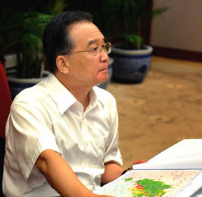 8月5日,中共中央政治局常委、國務(wù)院總理、國務(wù)院抗震救災(zāi)總指揮部總指揮溫家寶在北京中南海主持召開總指揮部第24次會議,討論汶川地震災(zāi)后恢復(fù)重建總體規(guī)劃。這是溫家寶在觀看《國家汶川地震災(zāi)后恢復(fù)重建總體規(guī)劃圖集(初稿)》。(新華社記者劉建生攝)