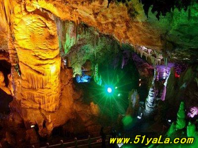 已開(kāi)發(fā)洞長(zhǎng)1800米,觀賞面積23000平方米,由八大景區(qū)邊輟而成,依次為“玉柱潭”、“溢彩殿”、“疊幃宮”、“洞天河”、“聚仙宮”、“瑤池宮”、“藏秀閣”、“石林坊”,洞內(nèi)石茬、石旗、石瀑、石幔、石筍密布,峰回路轉(zhuǎn)、曲徑通幽;鐘乳石形象各異,姿態(tài)萬(wàn)千,或如仙、如佛、如禽、如獸、或如簾、如幕、如筍、如林,其景觀無(wú)不栩栩如生,帷妙帷肖,洞中大小景觀368個(gè),尤以“眾仙迎客”,“金龜渡仙翁”,“斜塔”,“鯉魚(yú)戲水”,“七層寶塔”等200余個(gè)景觀,因造型奇特,形象逼真而倍受游客青睞,“中華第一柱”,“亞洲第一盾”名騷中原。