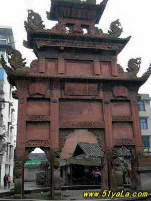南充奎閣系清嘉慶十一年南充知縣王衍慶倡建的一座磚、石、木結構的八方、三層、通高27米的樓閣。閣基為須彌座,高2米,邊長4.7米,直徑11米。第一層高5.6米,正中供魁星像。大門面西南方,門上有楹聯“百尺玉樓高望果州甲第,一只彩筆大書嘉水文章”,橫批“文明主宰”,意為“魁星點斗”。第二層高4.4米,供俸有神像。第三層高8米,為鐘樓,曾每日早、中、晚三次擊鐘報時。原鐘已毀,現存大銅鐘為民國十七年補鑄。每層樓閣轉角處系有銅鈴,共24個,微風吹動,丁當之聲,悠揚悅耳。閣頂為寶珠頂,高1米。奎閣宏偉壯麗,氣勢不凡,為四川省文物保護單位。