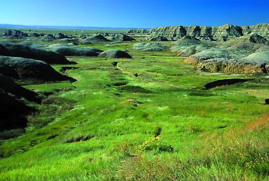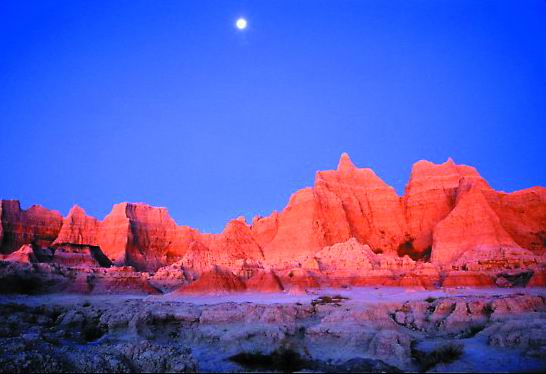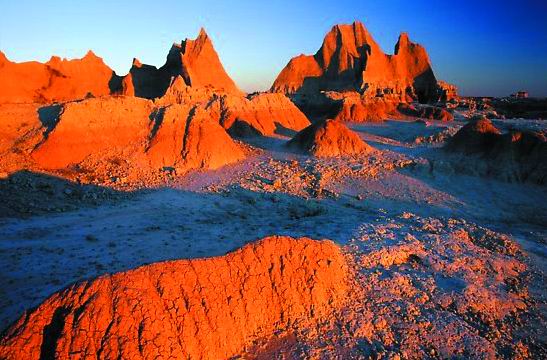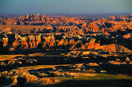 荒地國家公園位于美國南達科他州(South Dakota)西南部,擁有世界上最豐富的漸新世時代(Oligocene rpoch)的化石,同時也是美國最大的受保護草原所在地。該國家公園的地貌特征為劇烈侵蝕形成的尖塔石山點綴在廣袤草原上,具有強烈的視沉沖擊力。該國家公園的典型景觀還包括11000多年的人類歷史和古生物學資源。1939年1月25日命名為國家紀念地,1978年11月10日成為國家公園。