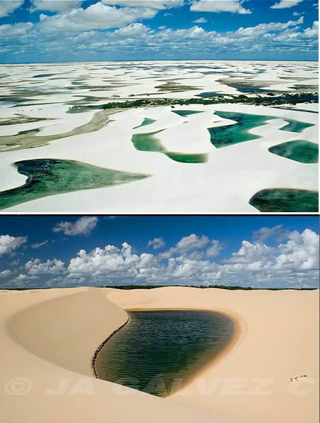 提及沙漠,你腦中一閃而過的,往往多是“廣袤”,“空寂”這樣的詞匯。說它迷人,也許會覺得不大可能,下面要介紹的這十大沙漠,它們獨(dú)特到令人稱絕的美景,定將重構(gòu)你對沙漠的認(rèn)識。 1、被雪覆蓋的沙漠:塔克拉瑪干沙漠 塔克拉瑪干沙漠是世界上大型沙漠俱樂部成員之一,從面積上來看,它在眾多非極地沙漠中位居第15位。它位于塔里木盆地,沙漠覆蓋面積為270000平方公里。塔克拉瑪干沙漠的北緣和南緣都有絲綢之路的支線穿過。 2008年,這片“中國沙漠之最”經(jīng)歷了有史以來最大的降雪和最低的氣溫,雪連降了11天。整片沙漠都被冰雪覆蓋,在沙漠中這樣大規(guī)模的降雪還是非常罕見的。 2、擁有藍(lán)湖的沙漠:巴西的拉克依斯-馬拉赫塞斯 巴西擁有世界上最大的熱帶雨林,全球30%的淡水資源都儲備在這。在這樣一個(gè)國家我們居然也能找到沙漠,實(shí)在難以置信。拉克依斯-馬拉赫塞斯國家公園位于巴西北部的馬倫容州,占地面積300平方公里,公園內(nèi)遍布雪白的沙丘和深藍(lán)的湖水,堪稱世界一絕。 但為什么沙漠中又會出現(xiàn)藍(lán)湖呢?這片沙漠與眾不同之處就在它的降雨量,雖然貌似沙漠,但其年降雨量可達(dá)1600毫米,是撒哈拉沙漠的300倍,雨水注滿了沙丘間的坑坑洼洼,形成清澈的藍(lán)湖。在干旱季節(jié),湖水完全蒸發(fā)掉了。而雨季過后,湖中卻不乏各種各樣的魚類、龜和蚌類,好像它們一直就沒有離開過似的。對此有兩種假設(shè):一種說法是,它們的蛋或卵就埋在沙子下面,雨季來了,就孵化而出;另一種說法,是“不辭辛苦”的鳥類將它們的蛋或是卵一趟趟地帶過來的。 3、世界上最大的鹽沙漠:玻利維亞的烏尤尼鹽原 鹽原可以算是玻利維亞的標(biāo)志性景觀了。位處高原之中,沙漠廣闊且近乎平坦,與天空渾然一體。沙漠中,有幾個(gè)湖,由于各種礦物質(zhì)的作用,湖水呈現(xiàn)出奇怪的顏色。 四萬年以前,這片地區(qū)曾是史前巨湖明清湖的一部分。之后,湖水干涸,剩下兩個(gè)大咸水湖:普波湖與烏魯烏魯湖,以及兩大鹽沙漠,即烏尤尼鹽原與科伊帕薩鹽原,其中前者較大。從面積上看,烏尤尼鹽原是美國博納維爾鹽灘的25倍。據(jù)估計(jì),這里的鹽量大100億噸,目前,每年的開采量不到25000噸。