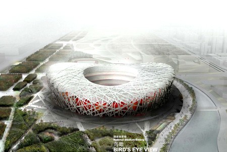 第29屆奧林匹克運(yùn)動(dòng)會(huì)的主會(huì)場,位于北京奧林匹克公園內(nèi)、北京城市中軸線北端的東側(cè)。建筑面積25.8萬平米,用地面積20.4萬平米。2008年奧運(yùn)會(huì)期間,承擔(dān)開幕式、閉幕式、田徑比賽、男子足球決賽等賽事活動(dòng),能容納觀眾10萬人,其中臨時(shí)坐席2萬座。奧運(yùn)會(huì)后,可容納觀眾8萬人,可承擔(dān)特殊重大體育比賽、各類常規(guī)賽事以及非競賽項(xiàng)目,并將成為北京市提供市民廣泛參與體育活動(dòng)及享受體育娛樂的大型專業(yè)場所,成為全國具有標(biāo)志性的體育娛樂建筑。 國家體育場的設(shè)計(jì)方案,是經(jīng)全球設(shè)計(jì)招標(biāo)產(chǎn)生的、由瑞士赫爾佐格和德梅隆設(shè)計(jì)事務(wù)所、奧雅納工程顧問公司及中國建筑設(shè)計(jì)研究院設(shè)計(jì)聯(lián)合體共同設(shè)計(jì)的“鳥巢”方案。該設(shè)計(jì)方案主體由一系列輻射式門式鋼桁架圍繞碗狀坐席區(qū)旋轉(zhuǎn)而成,空間結(jié)構(gòu)科學(xué)簡潔,建筑和結(jié)構(gòu)完整統(tǒng)一,設(shè)計(jì)新穎,結(jié)構(gòu)獨(dú)特,為國內(nèi)外特有建筑。其業(yè)主單位是由北京市國有資產(chǎn)經(jīng)營有限責(zé)任公司和中信集團(tuán)聯(lián)合體共同組建的國家體育場有限責(zé)任公司。國家體育場有限責(zé)任公司負(fù)責(zé)項(xiàng)目的投融資、設(shè)計(jì)、建設(shè)、運(yùn)營和管理。國家體育場于2003年12月24日開工,2006年建成并投入試運(yùn)行。 “鳥巢”是2008年北京奧運(yùn)會(huì)主體育場。由2001年普利茨克獎(jiǎng)獲得者赫爾佐格、德梅隆與中國建筑師李興剛等合作完成的巨型體育場設(shè)計(jì),形態(tài)如同孕育生命的“巢”,它更像一個(gè)搖籃,寄托著人類對未來的希望。設(shè)計(jì)者們對這個(gè)國家體育場沒有做任何多余的處理,只是坦率地把結(jié)構(gòu)暴露在外,因而自然形成了建筑的外觀。 “鳥巢”的設(shè)計(jì)理念 國家體育場坐落在奧林匹克公園中央?yún)^(qū)平緩的坡地上,場館設(shè)計(jì)如同一個(gè)容器,高低起伏變化的外觀緩和了建筑的體量感,并賦予了戲劇性和具有震撼力的形體,國家體育場的形象完美純凈,外觀即為建筑的結(jié)構(gòu),立面與結(jié)構(gòu)達(dá)到了完美的統(tǒng)一。結(jié)構(gòu)的組件相互支撐,形成了網(wǎng)絡(luò)狀的構(gòu)架,它就像樹枝編織的鳥巢。體育場的空間效果即具有前所未有的獨(dú)創(chuàng)性,卻又簡潔而典雅,它為2008年奧運(yùn)會(huì)樹立了一座獨(dú)特的歷史性的標(biāo)志性建筑。體育場就像一個(gè)巨大的容器,不論是近看還是遠(yuǎn)觀,都將給人留下與眾不同的、永不磨滅的形象,它完全符合國家體育場在功能和技術(shù)上的需求,又不同于一般體育場建筑中大跨度結(jié)構(gòu)和數(shù)碼屏幕為主體的設(shè)計(jì)手法。體育場的空間效果既具有前所未有的獨(dú)創(chuàng)性,而又簡潔、典雅。從這里,人們可以瀏覽包括通往看臺(tái)的樓梯在內(nèi)的整個(gè)區(qū)域動(dòng)線。體育場大廳,是一個(gè)室內(nèi)的城市空間,設(shè)有餐廳和商店,其作用就如同商業(yè)街廊或廣場,吸引著人們留戀忘返。