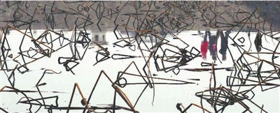 圖:進(jìn)入冬季,治水植物的殘枝敗葉漂浮在湖面上。記者高寶燕攝