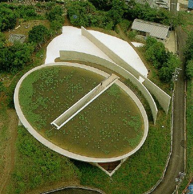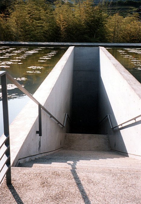 真言宗本福寺水御堂 這是一座非常特別的建筑物。安藤忠雄將主體「寺」建立在一個很大很大的荷花池下,從外觀或許看不出那是什么,但沿著它的樓梯向下走,就會發現,別有洞天!這項作品也將安藤使建筑與自然結合的信念發揮得淋漓盡致。