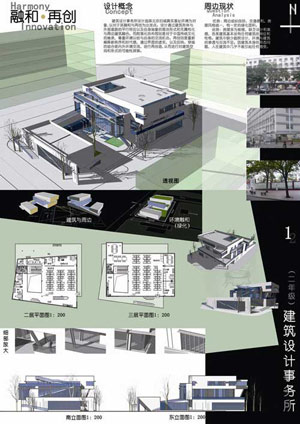近日,2008年全國高等學校建筑學專業(yè)第7屆大學生建筑設計作業(yè)競賽成功舉辦,包括港、臺在內(nèi)的200余所高校建筑學專業(yè)的學生作品參加了此次比賽。雖然參賽者還都是在校大學生,但他們的作品卻充滿了創(chuàng)意與個性,讓人眼前一亮。本期創(chuàng)意經(jīng)緯特別采訪了在此次大賽中獲得優(yōu)秀獎(最高獎項)的三名來自北京工業(yè)大學建筑與城市規(guī)劃學院建筑學專業(yè)的學生,分享他們在建筑設計過程中的感悟與收獲。 融合與再創(chuàng) 設計人:郭袁媛 設計項目:建筑設計事務所