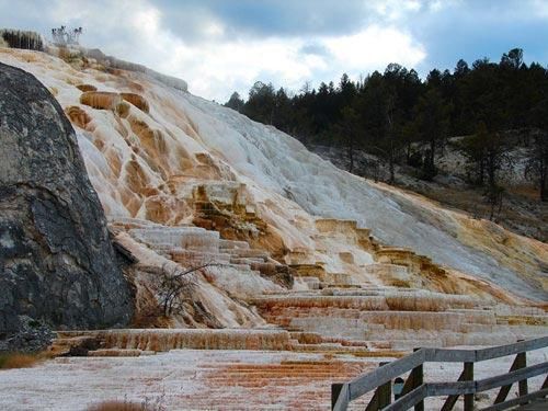 Mammoth Hot Spring是一處地質(zhì)景觀,象極了中國(guó)黃龍寺的風(fēng)景。一層層黃白色的巖石在水流的沖擊下,如一層層梯田層層疊疊而下。可惜水流好象枯竭了,風(fēng)景大打折扣。盡管如此,Mammoth Hot Spring附近有大片漂亮的山谷和荒原,夕陽照耀下的金色山谷金光閃閃,美不勝收。